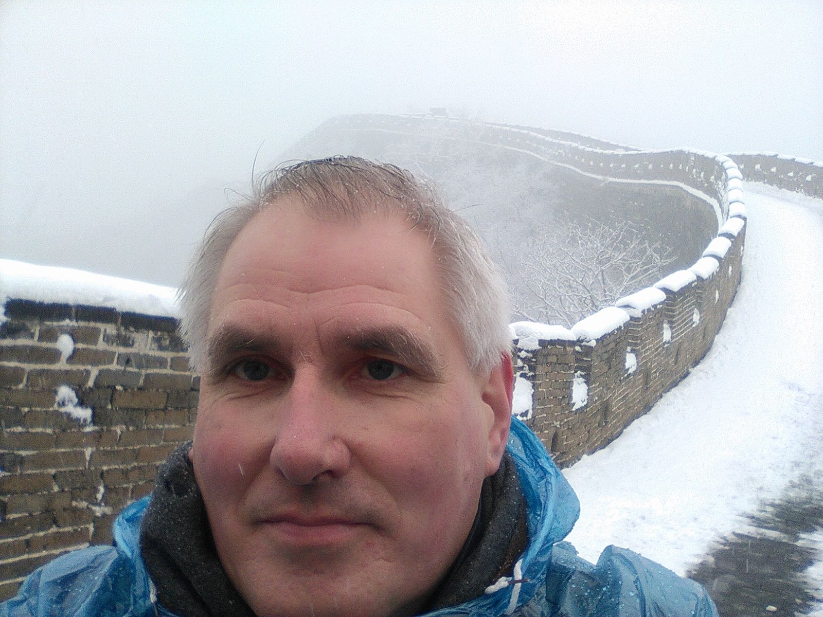 Unser Werksbusfahrer fährt uns nach Badaling. Das ist einer der Hauptanlaufpunkte für Touristen zum Besuch der Großen Mauer. Das Wetter ist schlecht. Es schneid, Temperaturen unter Null Grad. Der Weg über die Mauer ist schwierig und gefährlich. Die Stufen sind vereist. Nur wenige Besucher sind vor Ort.