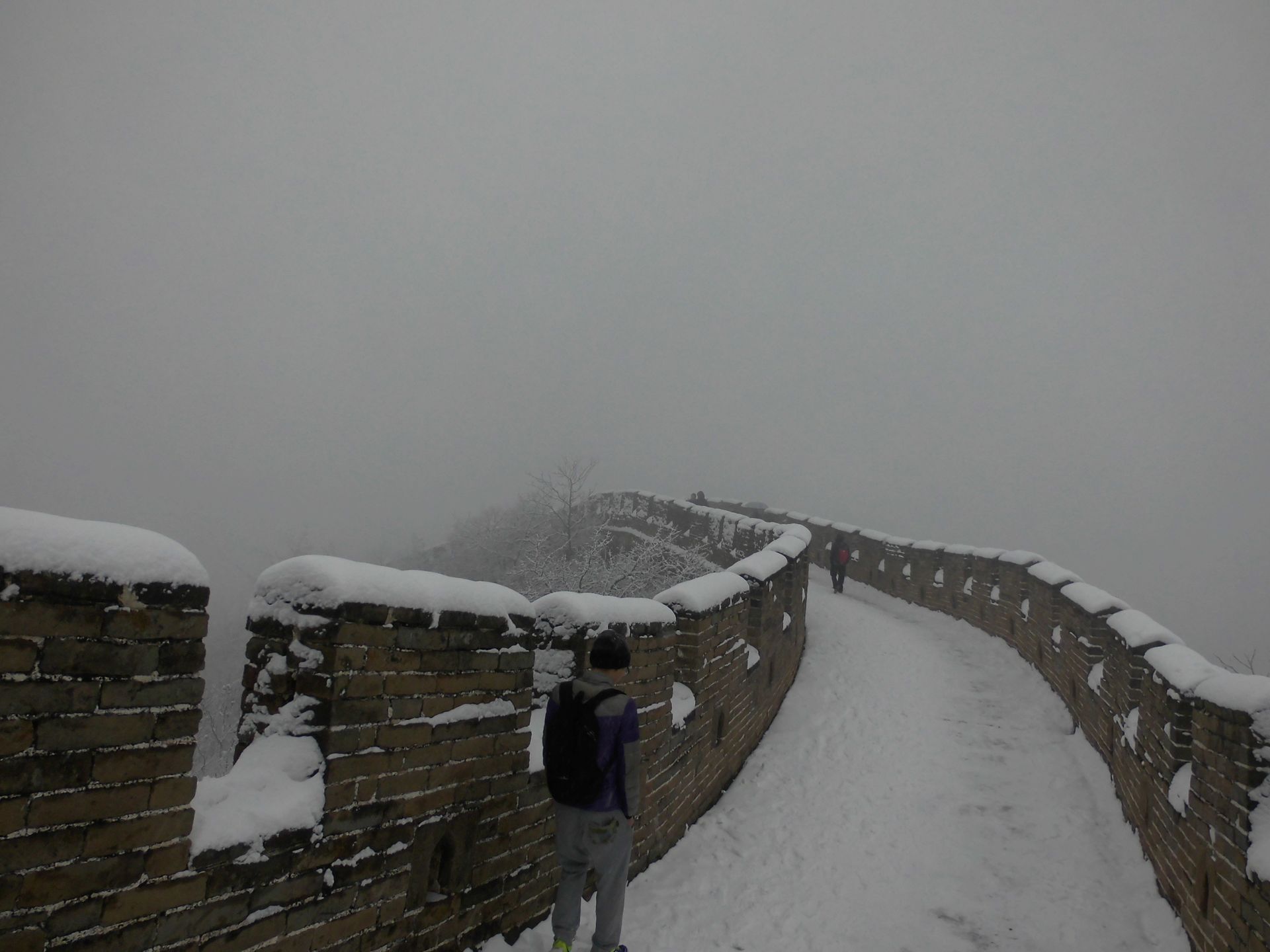 Unser Werksbusfahrer fährt uns nach Badaling. Das ist einer der Hauptanlaufpunkte für Touristen zum Besuch der Großen Mauer. Das Wetter ist schlecht. Es schneid, Temperaturen unter Null Grad. Der Weg über die Mauer ist schwierig und gefährlich. Die Stufen sind vereist. Nur wenige Besucher sind vor Ort.